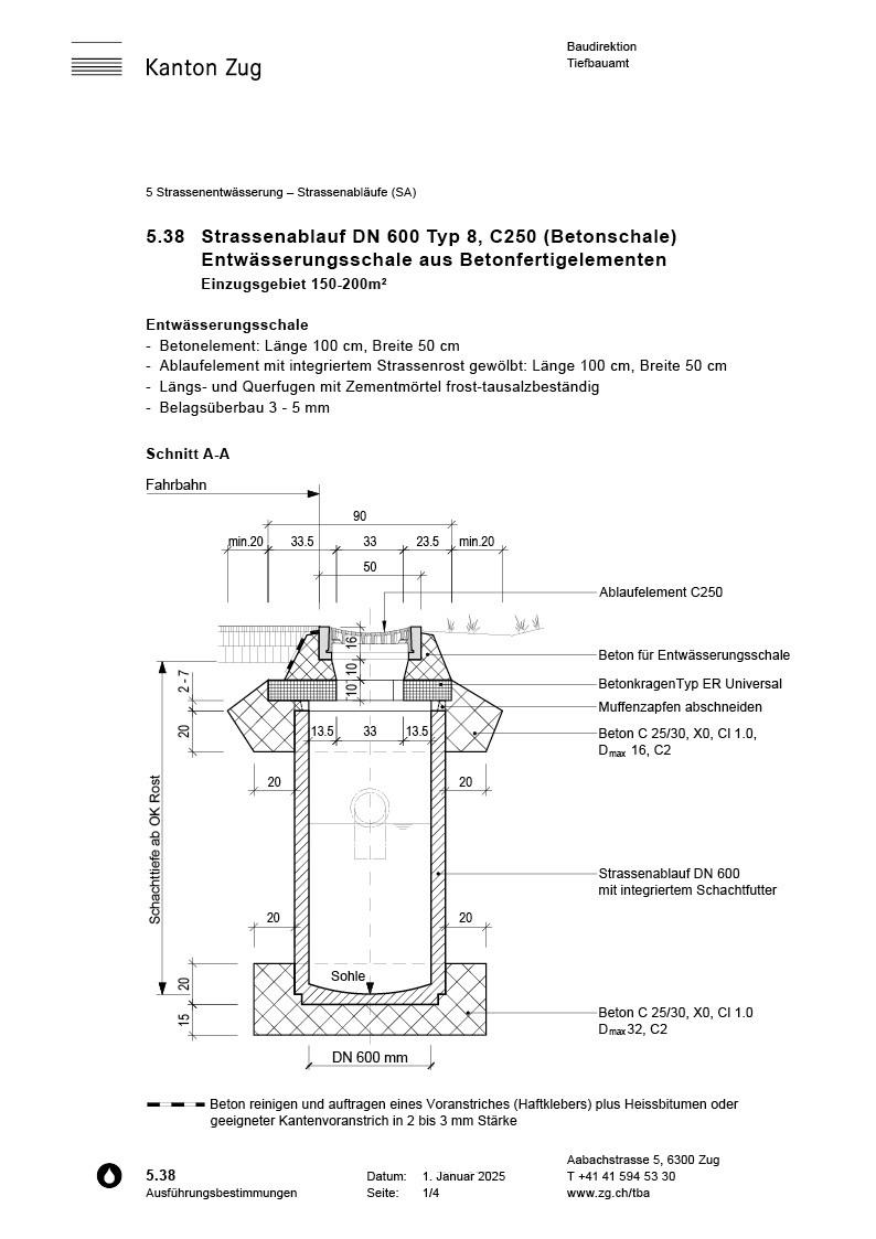 5.38 Strassenablauf DN 600 Typ 8, C250 (Betonschale)
